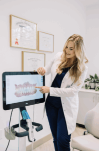She ditched the old-school gooey putty impressions for a digital scanner that allows her to capture people’s teeth and bites digitally. She then crafts retainers from those scans with 3D printing technology.