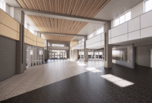 The high school project addresses areas of the building untouched during the 2011 renovations, including the physical education and athletic areas of the school. Additionally, the capacity of our cafeteria space and student commons renovation will provide students with inviting, modern, and flexible spaces that can be used by groups and individuals in a variety of academic and co-curricular ways. The project also includes improved student services support spaces to serve our students mental health an post-secondary needs.