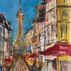 His work has been called “Sorrellism” — a mash-up of emotion and experience, where scale and structure sometimes give way to intuition. A Paris street, a Carmel skyline, the sun-washed cliffs of Cinque Terre — all find their way into his pieces, transformed by memory and imagination. “Everything carries a sliver of my heart,” he says.