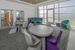 Step inside the Behavioral Health Center, and it’s clear that the design itself is part of the therapy. Natural light fills the hallways and community spaces. The color palette is soft and serene, evoking peace rather than sterility. Artwork depicting tranquil natural scenes lines the walls, encouraging mindfulness and reflection.