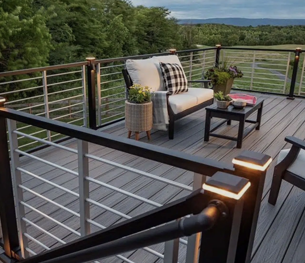 Today’s lighting features are as beautiful as they are practical. From elegant, illuminated glass railings to subtle undermount lighting and sleek post cap lights, there’s no shortage of creative ways to bring a soft, ambient glow to your space. Add riser lights to stairs or post-mount lights along railings to guide foot traffic safely, especially after dark. Planning for dock lighting? Consider classic wharf lights or underwater fixtures that not only look amazing but also improve visibility for late-night boat rides or fishing.
