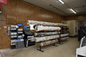 The 18,000-square-foot showroom holds an impressive range of flooring. Binkley’s carries carpet, luxury vinyl plank, sheet vinyl (also known as linoleum), and ceramic and porcelain tile. Major brands include Mohawk, Shaw, Mannington and Casabella, with options for both residential and commercial use. Around 60 area rugs are kept in stock, in indoor and outdoor styles and popular sizes from 5×7 to 9×12. New styles arrive as stock moves, so customers always find fresh looks.