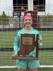 “When I was in upper elementary school, no one else raised their hand to be goalkeeper,” she says. “I fell in love with the position. In middle school, I was the only one who raised their hand again. I like the team aspect of soccer and the adrenaline when I’m diving for a save.”
