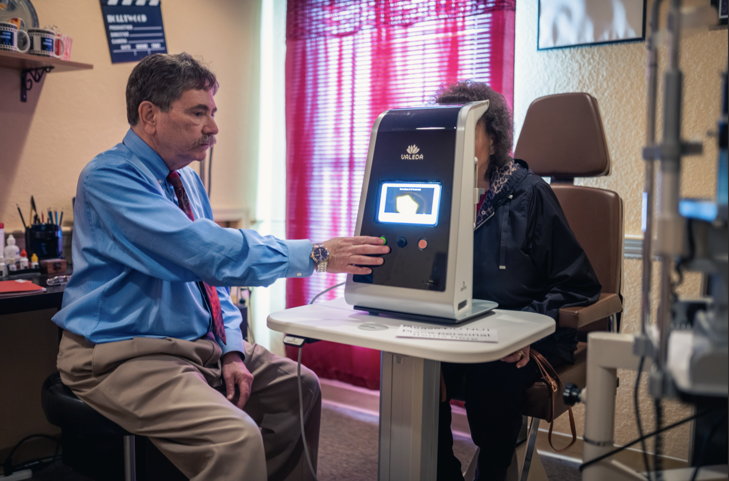 “There’s no dilation, no eye drops, no medicines and, most importantly, no injections, no needles,” he says. “Patients can drive themselves to the appointment and drive themselves home, and it only takes 10 minutes.”