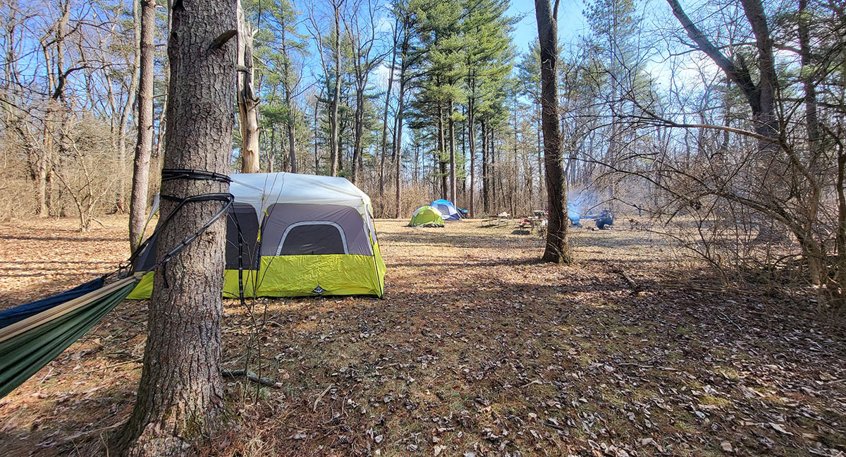 The Milhollins have preserved all nine primitive campsites on the property, including Twin Trees, Lone Cherry, and Butternut Hill. Other amenities include fishing along the White River, a playground, volleyball court, fire pits, and horseshoes.
