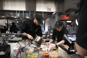 Cooking live in front of judges, cheferees and spectators — all with a running clock ticking down — can be daunting. While the people didn’t bother Hilton, since he’s used to working in open kitchens, the clock was a different story.