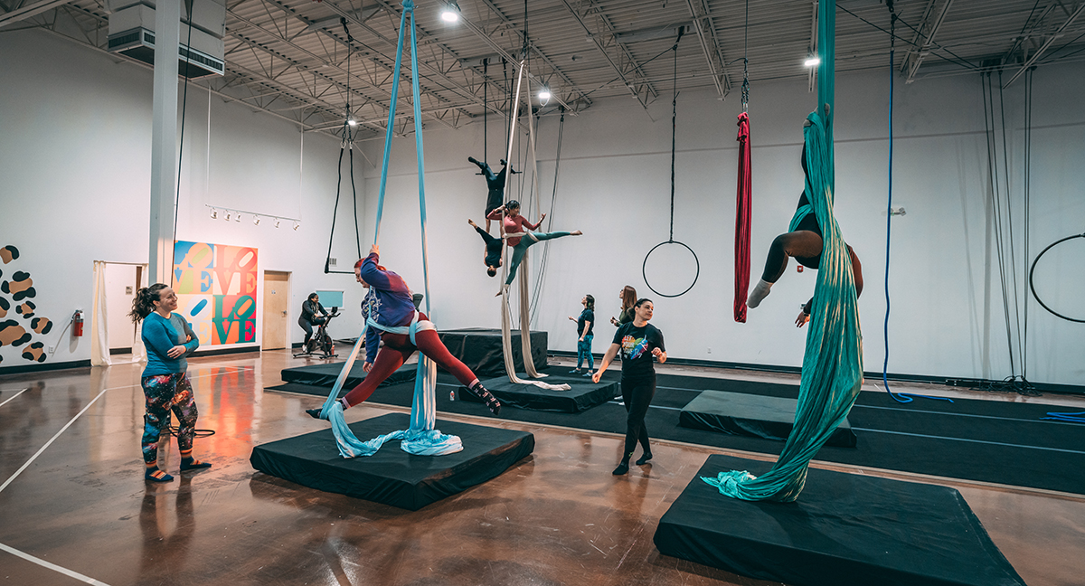 Students try aerial acrobatics for a variety of reasons. Some come for fitness. Others come because they have a background in cheer, dance or gymnastics. Then there are those who saw Pink do it or were mesmerized by a contestant on “America’s Got Talent”.