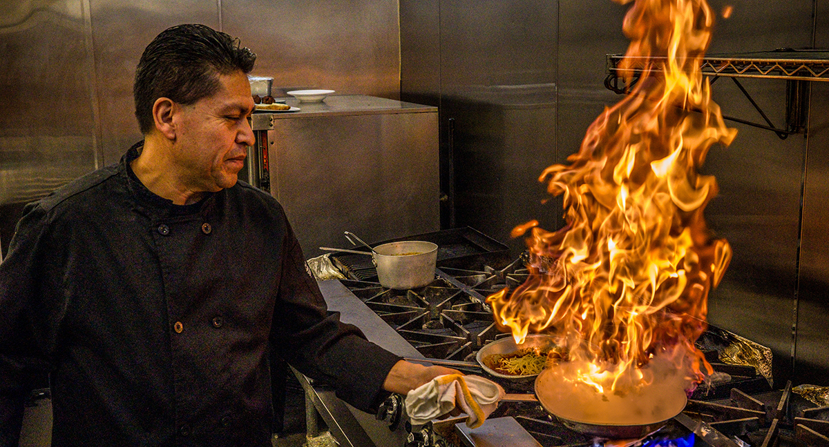 “Village Kitchen was an ice cream and burger shop, and I was looking for fine dining, so I sold it and bought Sangiovese,” says Evans, who relocated in 2015 to the Ironworks building, which also houses Ruth’s Chris Steak House, Verde Flavors of Mexico, and Provision. This June will mark the 10-year anniversary of being in this unique space, which patrons adore.