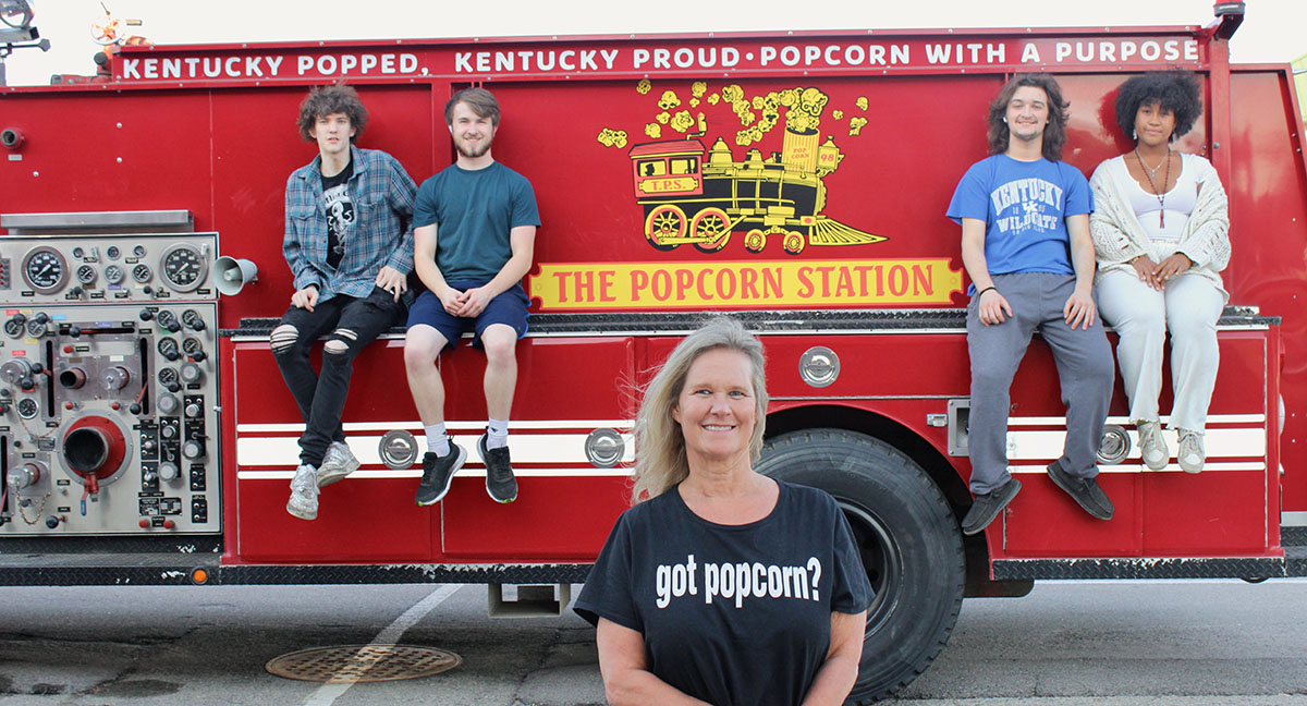 Owen also donates gift baskets to area fundraisers. The Popcorn Station fire truck can be seen out in the community at philanthropic events such as FEAT of Louisville’s annual run-walk for autism, serving popcorn to those participating.