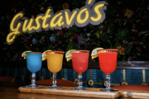 Gustavo’s offers a full bar with special cocktails and signature drinks, featuring margaritas, tequilas, bourbons, wine and whiskey. Many draft beers are also available, as are homemade sangrias and mojitos.