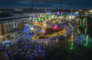 “Our goal every year is to expand not only the number of lights, but the types of displays and experiences, she says. “In 2023, for example, we wanted to highlight the fact that the gardens are built on top of a former landfill, so staff and volunteers worked together to create an upcycled display including ornaments made out of aluminum cans and spent plant materials, and twinkling lanterns from old cardboard boxes. This was an opportunity to show a unique way to turn trash into something beautiful.”