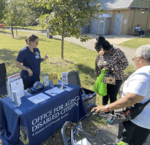 Each year, at the start of the warm weather season, the OADC holds a major event. Anyone over the age of 60 can receive an electric box fan during the annual Fan Fair. The giveaway began in 2016 when the OADC and the Kentuckiana Regional Planning and Development Agency responded to the many calls they received from seniors needing heat relief. This year, 700 fans were handed out, and attendees could visit informational booths staffed by representatives from CenterWell Senior Primary Care, PACE Senior Community Care of Kentucky, JenCare Senior Medical, University of Louisville Brown Cancer Center, AARP Kentucky, DAIL Office of Dementia Services, Wellcare and more.