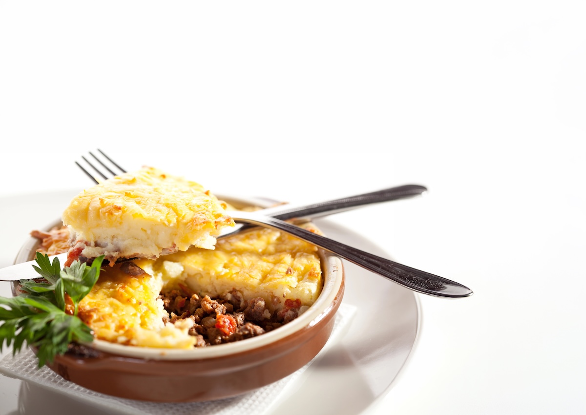 Spread the mashed potatoes evenly over the meat mixture, using a fork to create texture on top. Bake uncovered for 25–30 minutes, or until the top is lightly golden and the filling is bubbling around the edges.